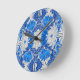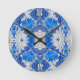 Floral Damask, Sapphire Blue und Grau Runde Wanduhr