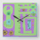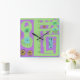 Floral Decal Ethnic Print Green Lila Black Quadratische Wanduhr