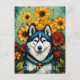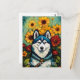 Floral Dog Art Siberian Husk Malerei Postkarte