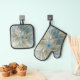 Floral Dream Pattern Abstract Blue Khaki Fractal Ofenhandschuh & Topflappen-Set