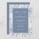 Blumendusty Blue Elegant Hochzeitseinladung. Eine Hochzeitseinladung mit elegantem Blumendesign. Schöne, staubblaue Blumen auf einem hellen Hintergrund. Ideal für Hochzeiten im Frühling und im Sommer.