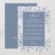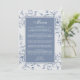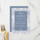 Blumendusty Blue Elegant Wedding Menu. Ein Hochzeitsmenü mit elegantem Blumendesign. Schöne, staubblaue Blumen auf einem hellen Hintergrund. Ideal für Hochzeiten im Frühling und im Sommer.
