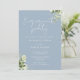 Diese elegante dustig blaue Begleiter-Party-Einladung kann mit Ihren Informationen in chic Typografie personalisiert werden, mit Ihren Monogramm-Initialen auf der Rückseite. Entwickelt von Thisisnotme©