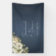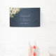 Erleben Sie das Ambiente Ihrer Hochzeit mit unserem exquisiten Blauen Hochzeitsbanner, das Eleganz und Persönlichkeit nahtlos verbindet. Die staubige blaue Farbe des Banners strahlt Eleganz aus, während ein zartes Bouquet mit hübschen, weißen Rosen an der links oberen Ecke des Banners die Reinheit und ewige Liebe symbolisiert. Personalisiert mit den Namen der Braut und des Bräutigams, zusammen mit ihrem Hochzeitsdatum, wird dieses Banner zu einem zeitlosen Memento, das das Wesen Ihres besonderen Tages festschreibt. Ob es am Eingang Ihres Veranstaltungsortes hängt oder die Kulisse Ihres Lieblingstisches trifft, dieses Banner schafft einen faszinierenden Mittelpunkt und lädt die Gäste zu einem fröhlichen Fest ein.