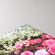 Schöne, rosa Blume, eingebettet in diesen Garten mit Grün und zartem Weiß mit Blumensträuchern.