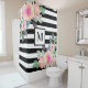 Schöne rosa Aquarellblume auf schwarz-weiß Rugby gestreiftem Duschvorhang. Personalisiert mit Ihrem Monogramm/Initial.