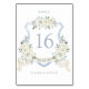 Floral Elegant Dusty Blue White Crest Table Number Tischnummer