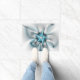 Einzigartige, elegante Fantasy-Blume mit 3D-Effekt. Blau und Grau in Pastellfarben. Design für Ihre Tür und mehr.