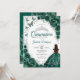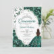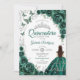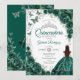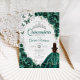 Floral Emerald Green Silver Quinceanera Einladung