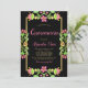 Floral Fiesta Black Gold Quinceanera Foto Einladung