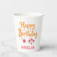Floral Flowers Happy Birthday Handlettering Paper Cups. Celebrate a special birthday with this charming personalized party cups! Featuring a hand-drawn floral design, cheerful "Happy Birthday" text in playful orange script, and a custom name. Ideal for daughters, nieces, granddaughters, or friends.