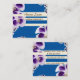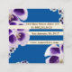 Elegante und stilvolle Visitenkarte. Weiße Streifen, blauer Hintergrund und blumengeschmücktes Foto. Personalisierbar.