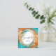 Floral Frame QR Code Logo Gold Aquamarin Coral Quadratische Visitenkarte
