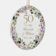Featuring a delicate watercolor floral lavender garland, this chic botanical 50th wedding anniversary keepsake ornament can be personalized with your special anniversary information and photo on the reverse. Designed by Thisisnotme©