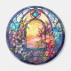 Floral Garland with Sunset Faux Stained-Glass Magnet