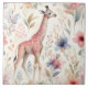 Eine wunderschön illustrierte Giraffe steht inmitten eines lebendigen, blumigen Hintergrunds. Das kühne, lebendige Aquarelldesign besticht durch eine Mischung aus farbenfrohen Blume und Grün und schafft eine bezaubernde Atmosphäre, die sich perfekt für Innendekorationen oder künstlerische Themen eignet.