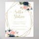Dieses geometrische Schild mit goldblühenden Formen eignet sich perfekt für eine Hochzeit oder ein Brautparty. Das Design ist in dunkelblau, blau, blau, navy, rosa, rot, goldfarben und grün. Die Blume sind in hellen Farbtönen gehalten. Personalisieren Sie das Zeichen mit Ihrem Hochzeitshashtag.