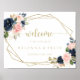 Dieses geometrische, blumenvergoldete Begrüßungszeichen ist perfekt für eine rustikale Hochzeit. Das Design ist in dunkelblau, blau, blau, navy, rosa, rot, goldfarben und grün. Die Blume sind in hellen Farbtönen gehalten. Machen Sie dieses Poster zu Ihrem eigenen, indem Sie den Namen der Braut und Bräutigam, und das Datum der Hochzeit.