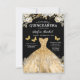Floral Gold QR Code Princess Quinceanera Einladung