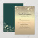 Elegante, luxuriöse, Vintage, smaragdgrüne und goldene Folie Hochzeitskarte RSVP mit vergoldeter Blumenspitze und einfacher Kalligraphie-Schrift.