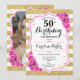 Floral Gold Weißrosa Foto 50. Geburtstag Einladung