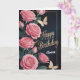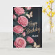 A graceful and elegant birthday card featuring soft pink roses, delicate gold accents, and fluttering butterflies on a deep dark background. This floral birthday design blends luxury and romance, making it perfect for celebrating women of all ages. Ideal as a personalized birthday card for her, this aesthetic rose illustration adds a timeless and classy touch to any birthday celebration. Perfect for moms, sisters, friends, or anyone who loves chic floral designs.