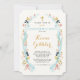 Schöne, auf Wiese Einladung mit einem Rahmen aus blauen Lorbeeren, rosa Wildblumen und Goldakzenten. Die handbemalten Schnüre umschließen Ihren Text mit einem Kreuz am oberen Rand des Rahmens und verkünden Ihren besonderen Tag der Bestätigung. In schöner Blues, Pinks, Golden und Braun mit schwarzer Wasserfarbe Waschung auf der Rückseite.