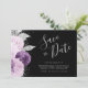 Floral Lila Silver Glitzer Save the Date Schwarz Einladung