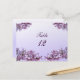 Das Thema dieser eleganten Hochzeitskarte ist die Tischnummer mit ihren liebevollen Liften. Die Vorderseite hat eine Grenze von rosa und lila Lila Sprays auf einem blassblauen lila Verlauf. Der Rücken hat ein einfaches Blütenspray auf dem gleichen exquisiten blassen Hintergrund. Alle Texte können für Ihren besondere Anlass angepasst werden.