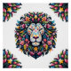 Erleben Sie die majestätische Silhouette eines Löwen, der mit lebendigen Blumendrucken Set vor einem unberührten, weißen Hintergrund verziert ist. Dieses fesselnde Kunstwerk verbindet die Regalaura des Löwen mit der Schönheit blühender Blume.