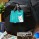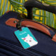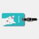 Niedliche individuelle Gepäckmarke für Ihr Reisegepäck. Das Design zeichnet sich durch eine süß-weiße Lama-Illustration, Blume und einen aquamarinen Polka-Dot-Hintergrund aus.
