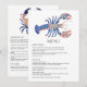 Floral Lobster Coastal Nautical Beach Wedding Menükarte
