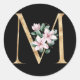 Floral-Magnolien-Monogramm in Goldbuchstaben M Runder Aufkleber