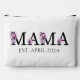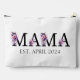 Dies ist ein einfaches, aber schönes Zubehör Beutel zu feiern, um eine Mutter zu werden. Das Design enthält das Wort "MAMA" in einem Blumentext mit unten anpassbarem Text. Der anpassbare Text kann entweder verwendet werden, um neulich zu feiern oder eine bald Mutter zu sein, indem man das EST-Datum ändert. Das wäre ein tolles Muttertagsgeschenk für eine junge Mutter.