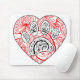 Floral Mandala Dog Paw Print Red Heart Mousepad