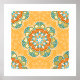 Floral Mandala Tile in Orange & Aquamarin Foliendrucke