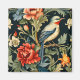 Eine Vintage Abbildung im Stil von William Morris zeigt einen blauen und weißen Vogel, umgeben von üppigen, stilisierten Blume. Ideal für alle, die Vögel und Natur Lieben.