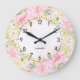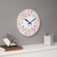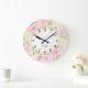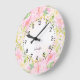 Floral Monogram, Botanfarbener Rosa Große Wanduhr