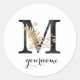 Floral Monogram M Black Gold Flora Runder Aufkleber