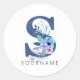 Floral Monogram S Winter Blue Bllossen Runder Aufkleber