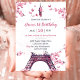 Floral Paris Eiffelturm 1. Geburtstag Party Einladung