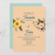 Boho, elegant, modern, botanisch, blühend dustig blau und pfirsichblauer Hochzeitseinladung mit goldenem Seilherz, Sonnenblumen, Aquarellpinken Blume, Monogramm-Rücken und trendiger handgeschriebener Kalligrafieschrift.