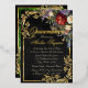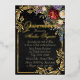 Floral, Photo & Gold Frame - Black Quinceanera Folieneinladung