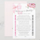 Floral pink bow "Guess Who?" baby shower game for a memorable party.