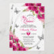 Floral Pink Silver Tiara Butterfly Mis Quinceañera Einladung