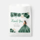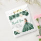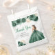 This quinceanera favor bag features a beautiful princess in a dark green ball gown with floral arrangements. This is perfect for a quinceanera birthday party.