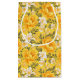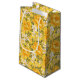 Diese kleine Papiergeschenktüte wird in einem hübschen gelben, mit Blumen geschmückten Perlenprint gezeigt. Passen Sie diese Geschenktasche an oder kaufen Sie, wie es ist. Lizenzierte Printwerbung