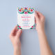 Befördern Sie Ihre Quinceañera Feier im Stil mit unserem Floral Quinceañera White Mexican Fiesta Geburtstag Flyer. Dieser auffällige und individuell gestaltete Flyer mit weißem Hintergrund ist mit türkisfarbenen, orangefarbenen und rosa Blumenmustern geschmückt und verbindet das moderne Design nahtlos mit den traditionellen mexikanischen Elementen. Der Name und die Veranstaltungsdetails des Quinceañera stehen im Mittelpunkt der Bühne und schaffen eine atemberaubende visuelle Anziehungskraft, die das Wesen des besonderen Tages erahnen lässt. Dieser Flyer ist mit viel Liebe zum Detail gestaltet und dient als ideales Werkzeug, um das Wort über die Feier zu verbreiten, sei es persönlich oder digital. Erhöhen Sie Ihre Event-Werbeaktion mit diesem schicken und anpassbaren Flyer, der den Ton für eine lebendige und festliche Quinceañera Set.