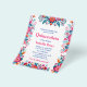 Befördern Sie Ihre Quinceañera Feier im Stil mit unserem Floral Quinceañera White Mexican Fiesta Geburtstag Flyer. Dieser auffällige und individuell gestaltete Flyer mit weißem Hintergrund ist mit türkisfarbenen, orangefarbenen und rosa Blumenmustern geschmückt und verbindet das moderne Design nahtlos mit den traditionellen mexikanischen Elementen. Der Name und die Veranstaltungsdetails des Quinceañera stehen im Mittelpunkt der Bühne und schaffen eine atemberaubende visuelle Anziehungskraft, die das Wesen des besonderen Tages erahnen lässt. Dieser Flyer ist mit viel Liebe zum Detail gestaltet und dient als ideales Werkzeug, um das Wort über die Feier zu verbreiten, sei es persönlich oder digital. Erhöhen Sie Ihre Event-Werbeaktion mit diesem schicken und anpassbaren Flyer, der den Ton für eine lebendige und festliche Quinceañera Set.