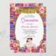 Quinceanera Einladungen mit Pfirsich, Rose Gold Glitzer und rot rosa Farbe.